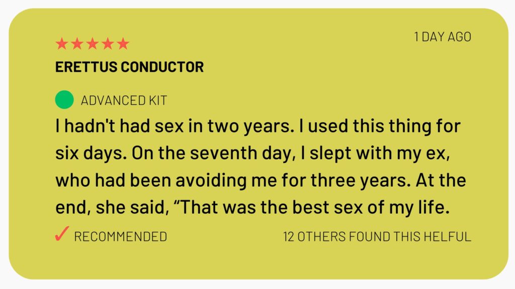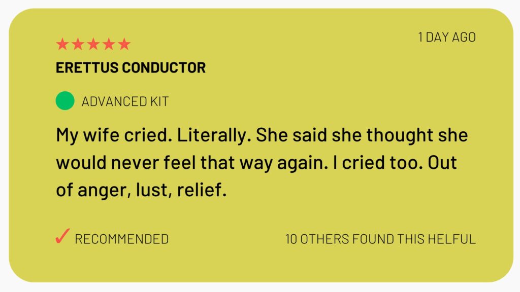 As we speak, thousands of people all over the world are using the Erettus Conductor™ to put an end to erectile dysfunction.